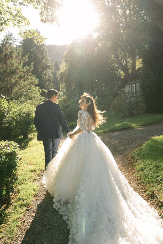 Ein zarter Duft von Tannennadeln liegt in der Luft, während das Licht sanft durch die Wipfel des Schwarzwalds scheint. Wer hier ankommt, spürt sofort die besondere Atmosphäre dieses Ortes – idyllisch, naturverbunden und wildromantisch schön. Kein Wunder also, dass sich Bad Wildbad im Herzen des Nordschwarzwalds zu einem Geheimtipp für Hochzeiten im Schwarzwald entwickelt hat. Wir hatten hier selbst unser Hochzeitsshooting gehabt. Zwischen historischen Bauwerken, einem malerischen Kurpark und spektakulären Ausblicken bietet die Stadt eine große Auswahl an Hochzeitslocations, die jede Feier zu einem unvergesslichen Erlebnis machen.